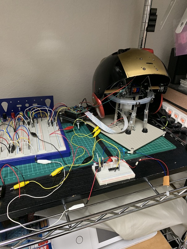 完成すれば音声で移動・動作、会話、情報提示と夢のようなキットでしたが、残念ながら全てを統一して完成させるには幅広く深い技術が必要であった為、一部の機能を利用に留まりましたが、これらを元に製作を行っています。